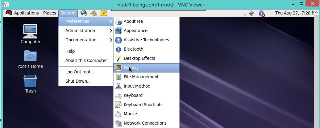 New 'node1.being.com:1 (root)' desktop is node1.being.com:1